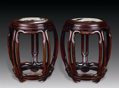 一對(duì)紅木鼓凳